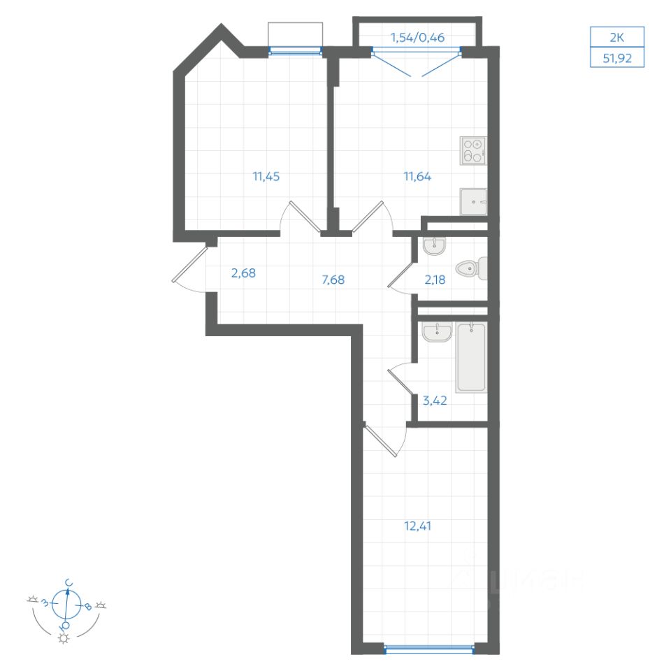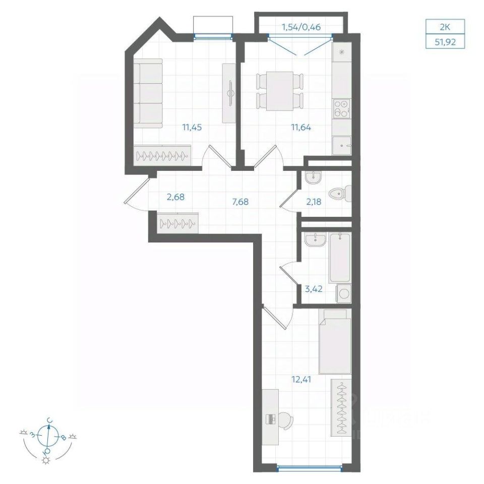 Общая площадь51,92 м2