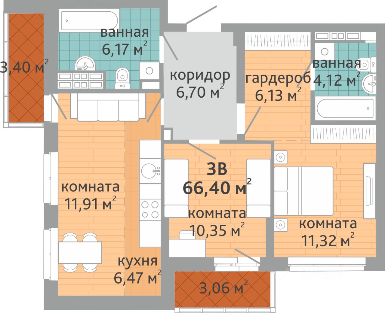 Продаётся 3-комнатная квартира в сданном доме (Коперника, 33), срок сдачи: III-кв. 2025, общей площадью 66.4 кв.м., на 8 этаже. Новый жилой дом от застройщика ''СЗ Дельа-Групп'' расположен по адресу: г. Екатеринбург, улица Викулова (дублёр).
