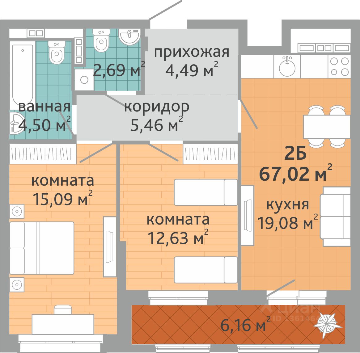 Продаётся 2-комнатная квартира в сданном доме (Коперника, 33), срок сдачи: III-кв. 2025, общей площадью 67.02 кв.м., на 2 этаже. Новый жилой дом от застройщика ''СЗ Дельа-Групп'' расположен по адресу: г. Екатеринбург, улица Викулова (дублёр).
