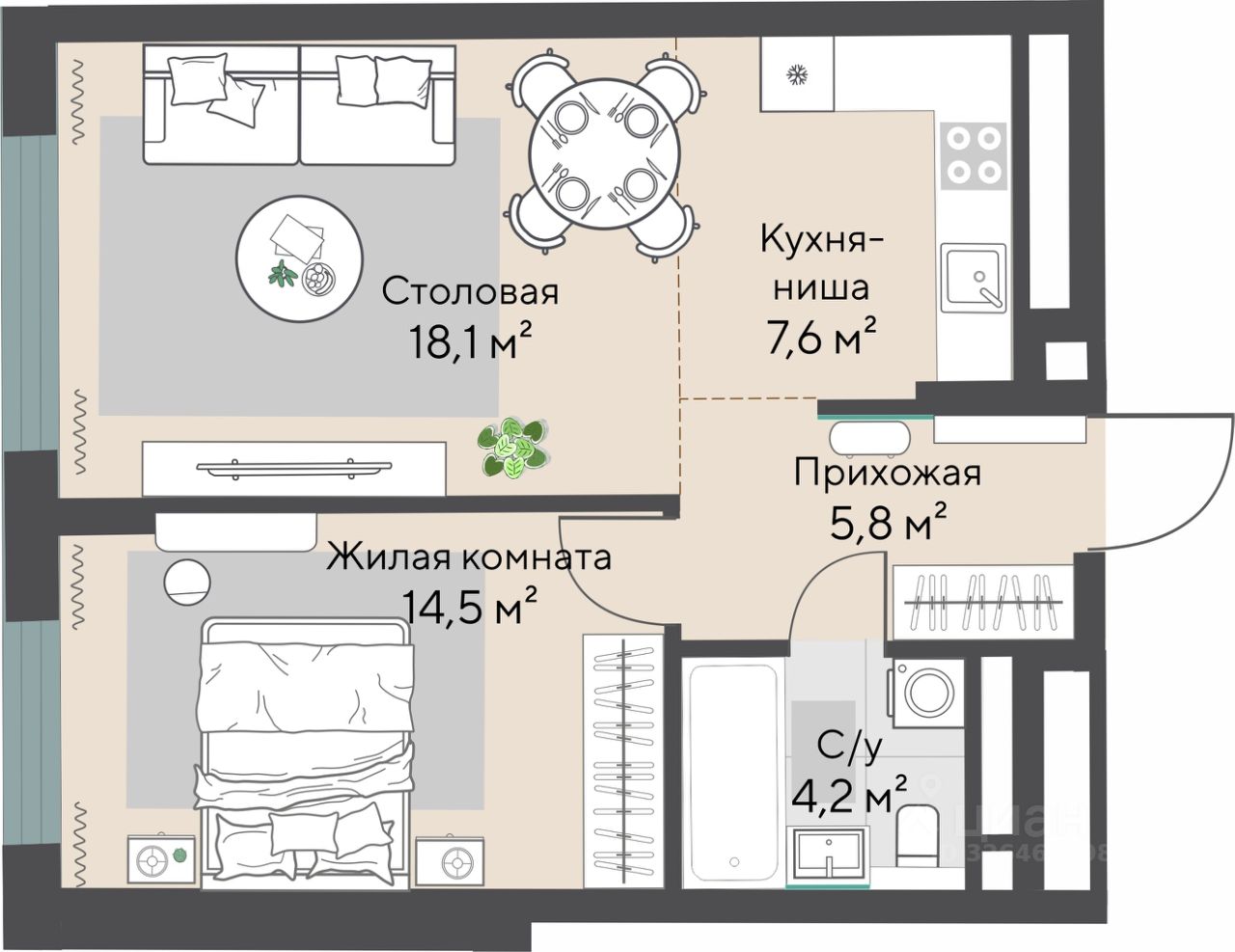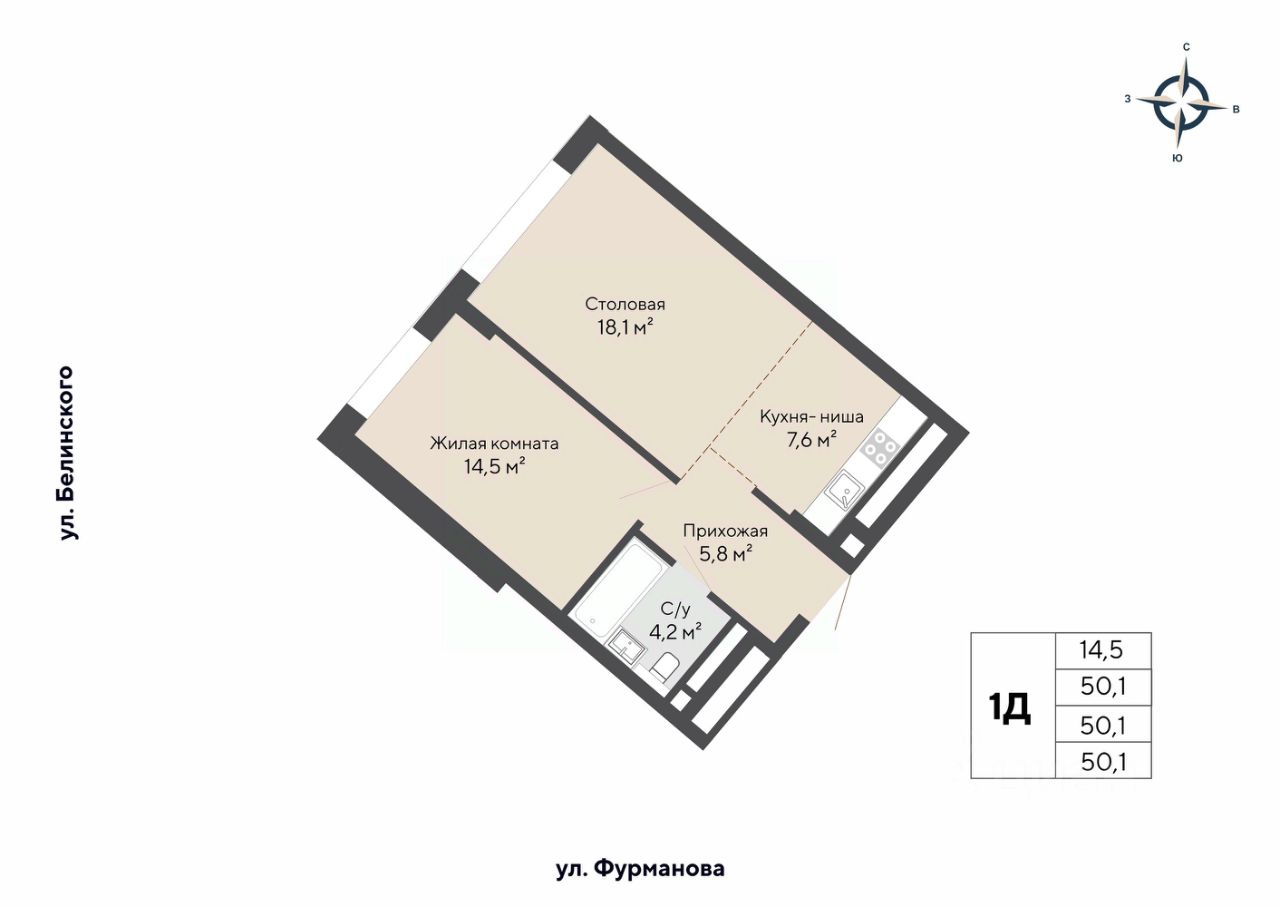 Общая площадь50,1 м2
