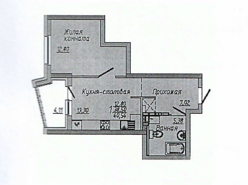 Тип планировки евродвухкомнатная квартира. Отдельно спальная комната и вместительная кухня-гостиная. Общая площадь 38,2 кв.м., без учета лоджии. Санузел совмещенный. Окна выходят на западную сторону, ул. Волгоградская.
