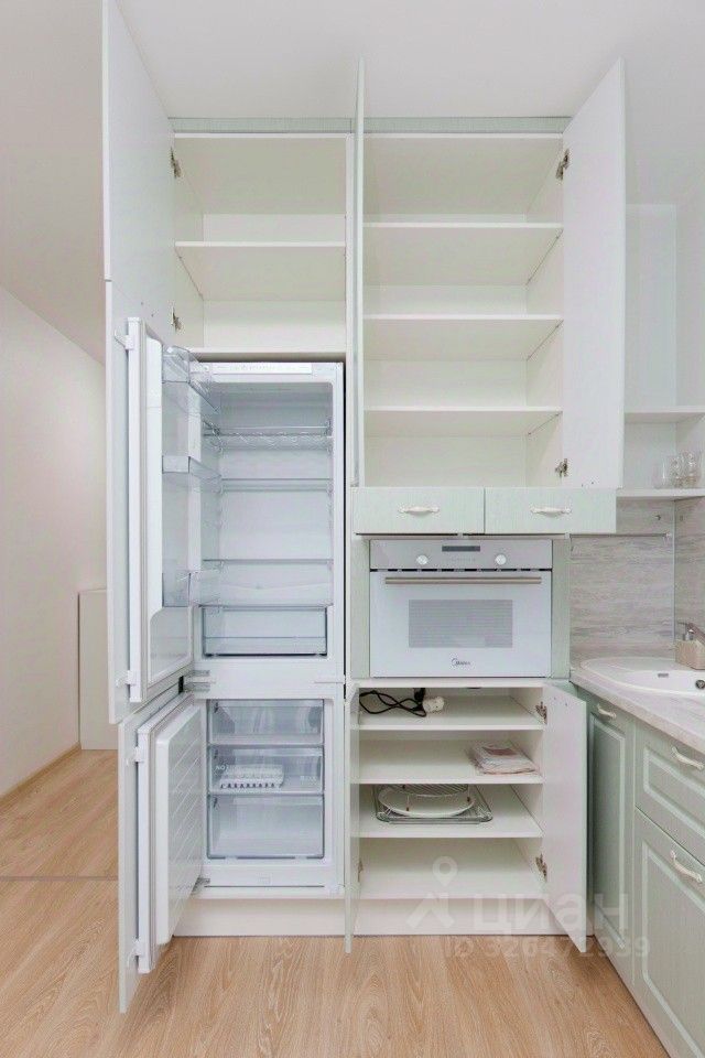 - кухонный гарнитур, - встроенный холодильник с морозильником, - встроенный духовой шкаф с функцией микроволновой печи, - встроенная посудомоечная машина, - встроенная электрическая варочная поверхность, - вытяжка, - кондиционер, - стол с двумя стульями, - два шкафа в коридоре и комнате, - двуспальная кровать с матрасом, - стиральная машина и электрический полотенцесушитель, - шкаф под обувь, - робот-пылесос.