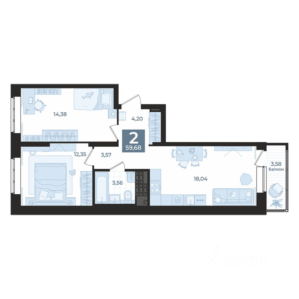 Общая площадь59,68 м2