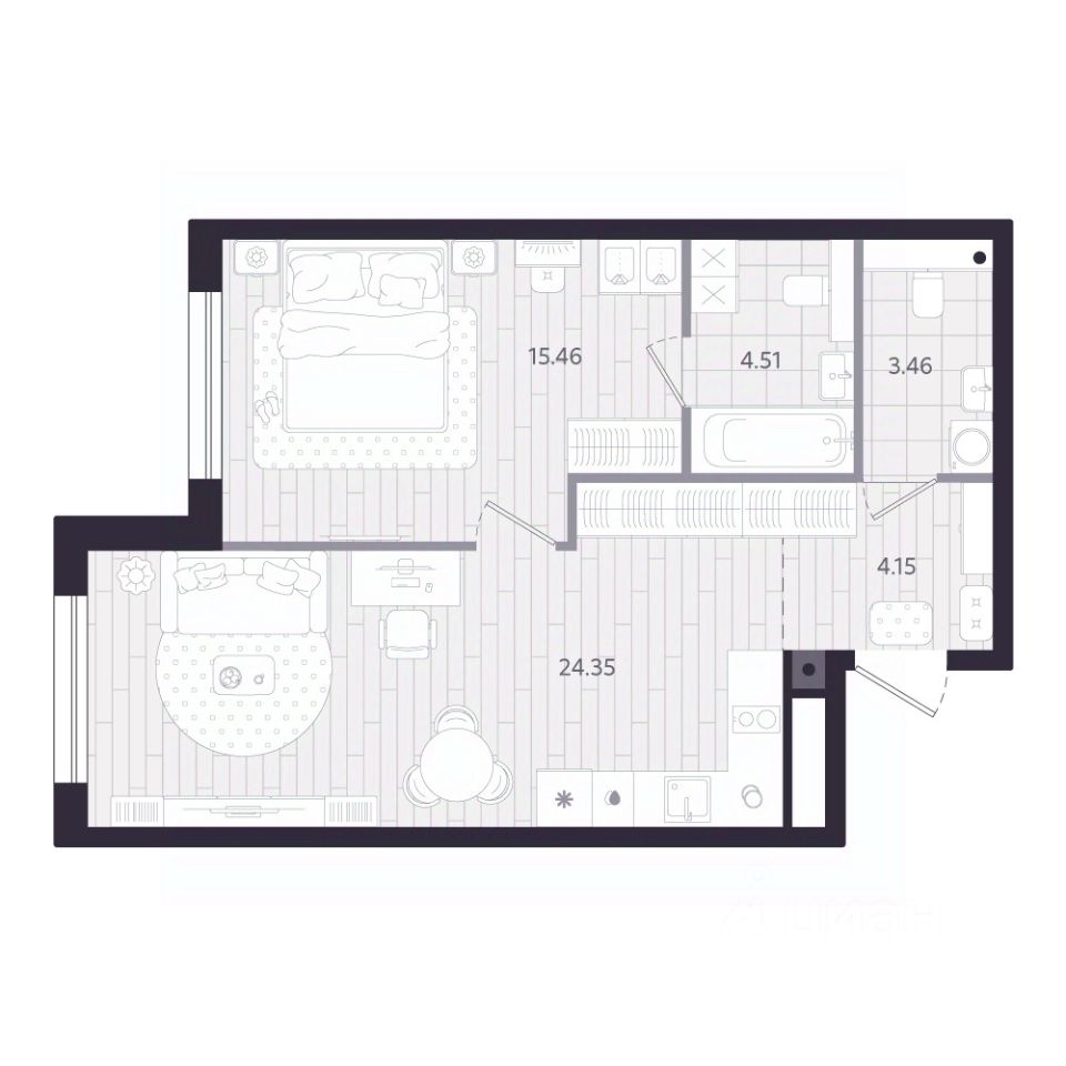 Продаётся 1-комнатная квартира в строящемся доме (Дом 1.1), срок сдачи: II-кв. 2028, общей площадью 51.93 кв.м., на 19 этаже. Новый жилой комплекс ''Тетро'' от застройщика ''Люди'' расположен по адресу: г. Екатеринбург, улица Героев России.