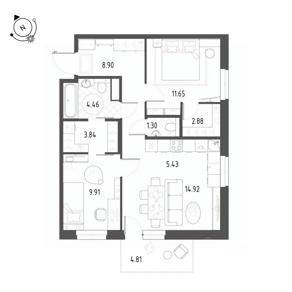 Продается 3-к квартира отделка White Box в ЖК ''Раута''.