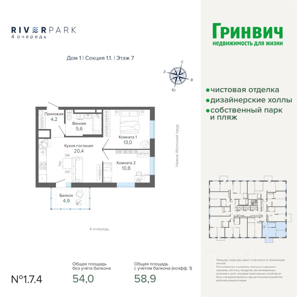 Продаётся 2-комнатная квартира в строящемся доме (Секция 1), срок сдачи: III-кв. 2026, общей площадью 58.91 кв.м., на 7 этаже. ''Атлас Ривер'' - это проект от ''Атлас Девелопмент'' в самом экологичном и природном районе Уктуса. Три высотки расположены в наиболее выигрышной локации квартала: в непосредственной близости к парку и набережной Нижнеисетского пруда. Архитектура фасадов в современном стиле сохранит актуальный облик комплекса, который будет сохраняться на долгие годы. Три высотных 25-этажных здания станут главным архитектурным украшением локации. Нижний ярус секций будет оформлен клинкерной плиткой, вдохновленной уютными улицами Европы, а остекленные балконы добавят акцентов на фасаде. Визуальная игра перспективных видов улицы будет создаваться чередованием фасадов разных оттенков, от светлых и пастельных до коричневых, придавая общему облику динамичность и гармонию.