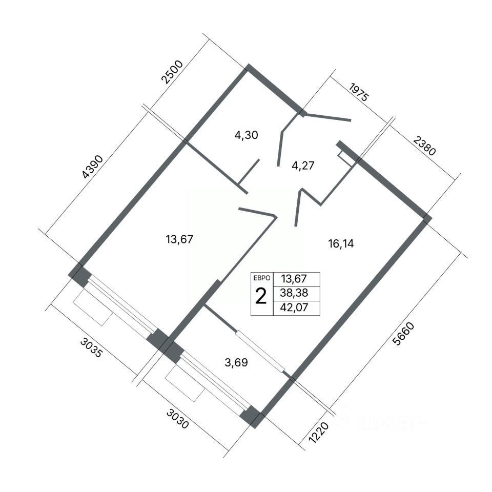 Общая площадь42,07 м2