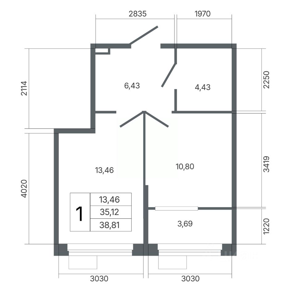 Общая площадь38,81 м2