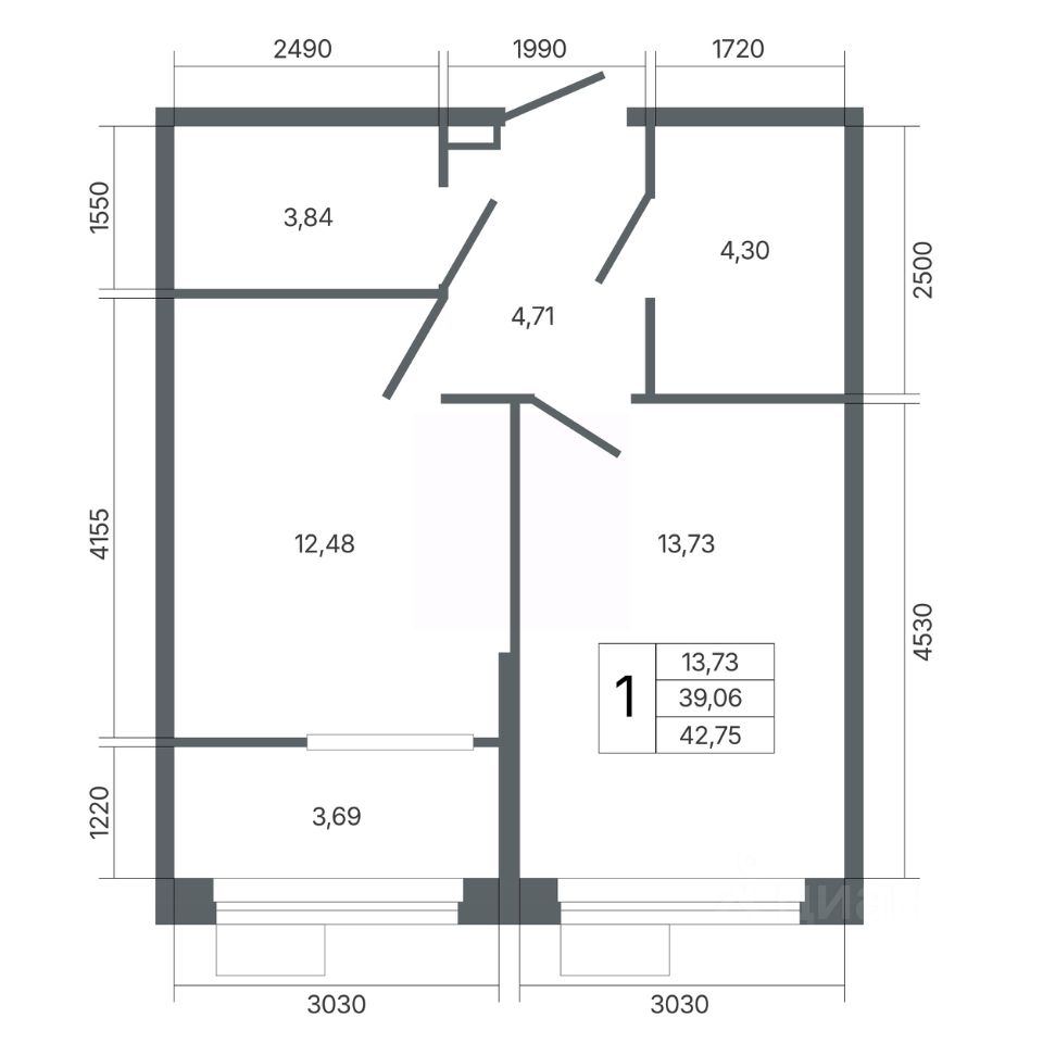 Общая площадь42,75 м2