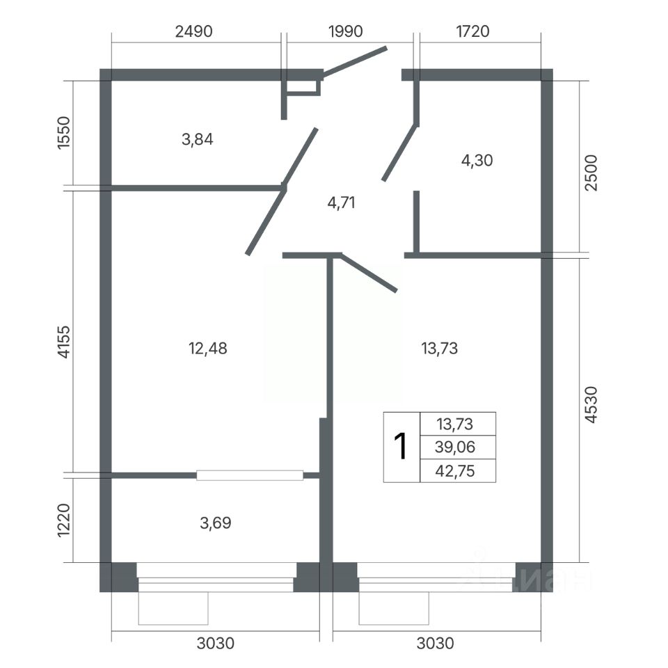 Общая площадь42,75 м2