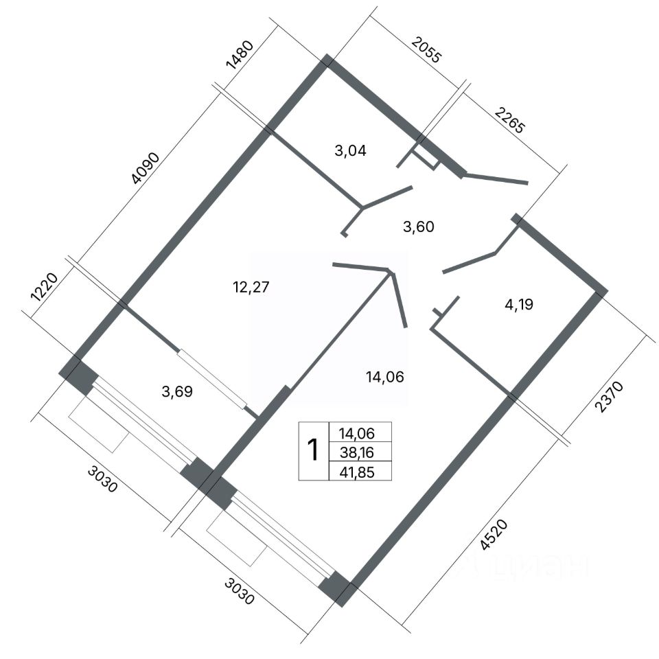 Общая площадь41,85 м2