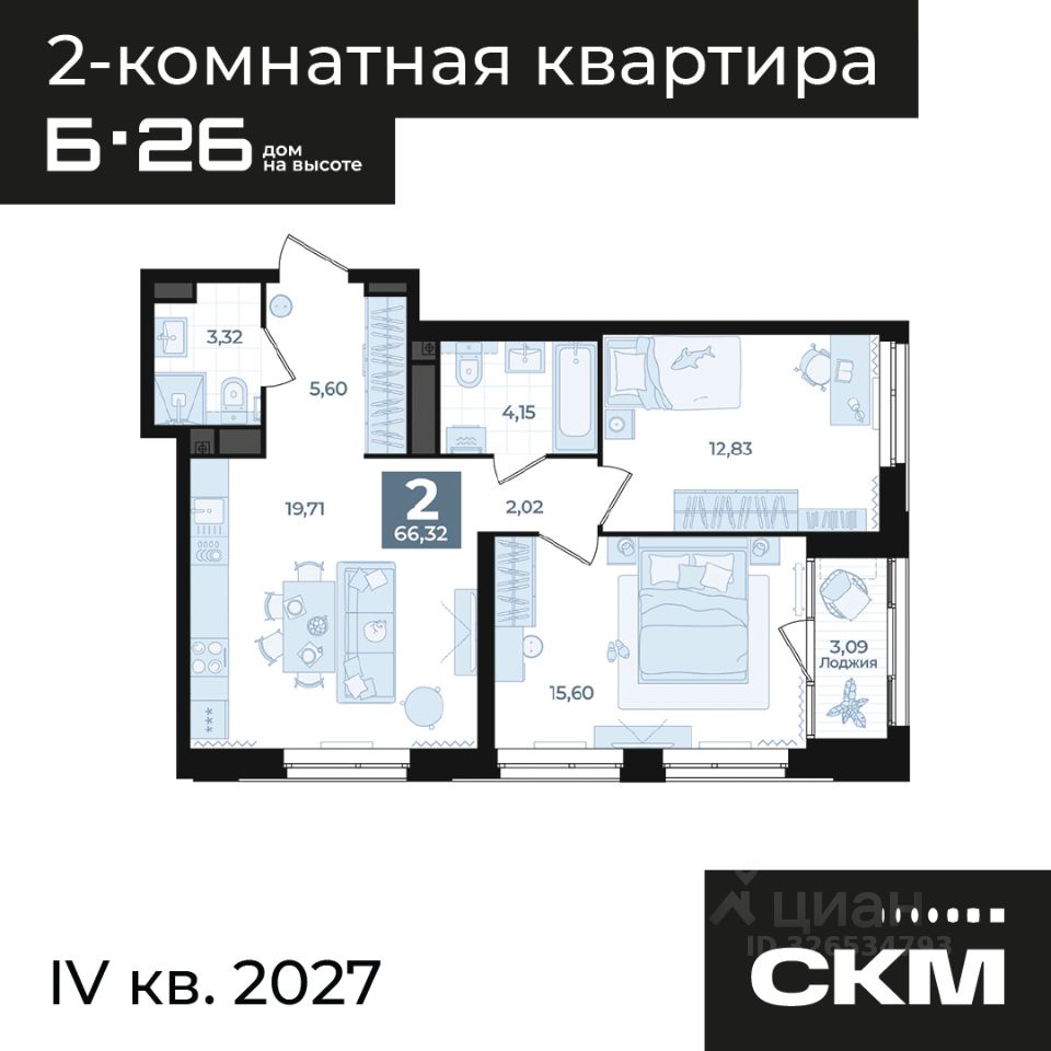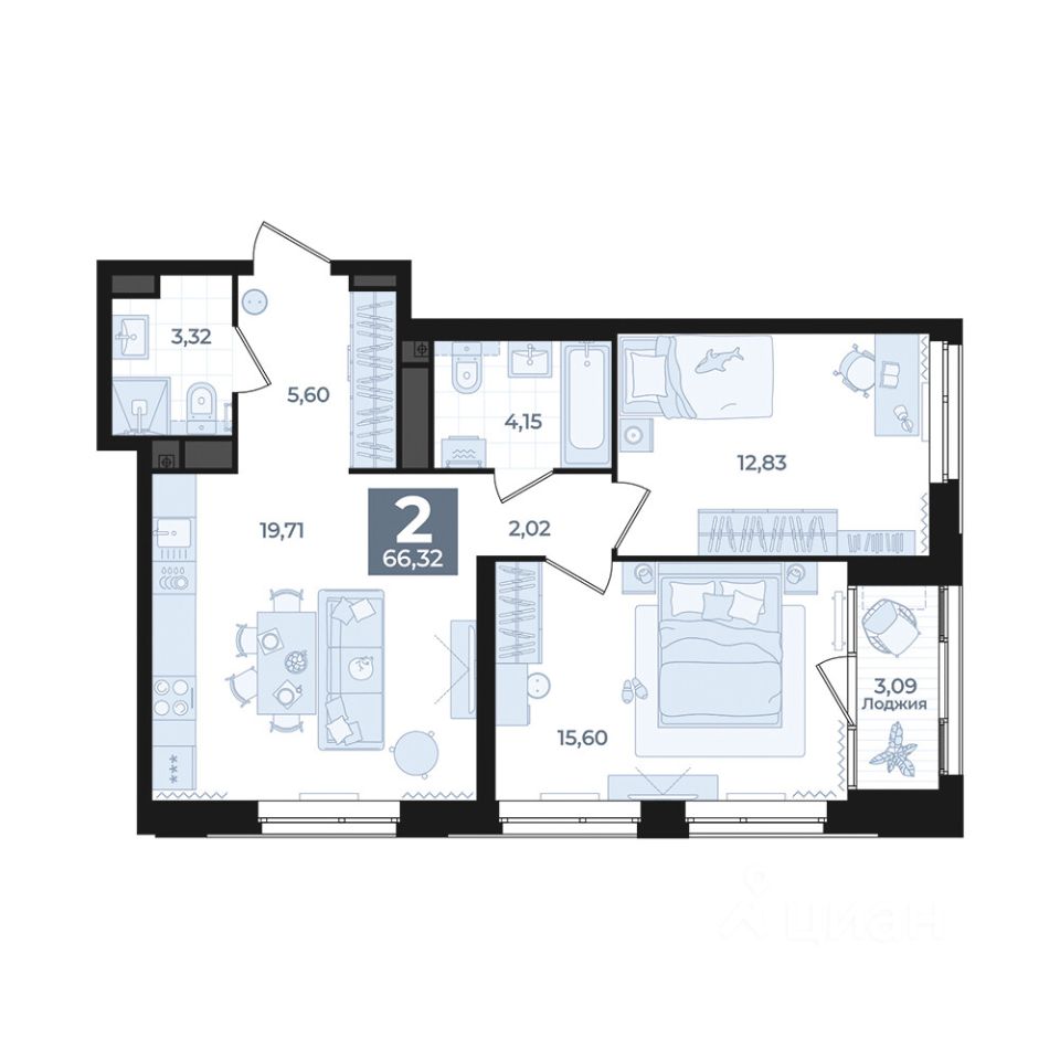Общая площадь66,32 м2