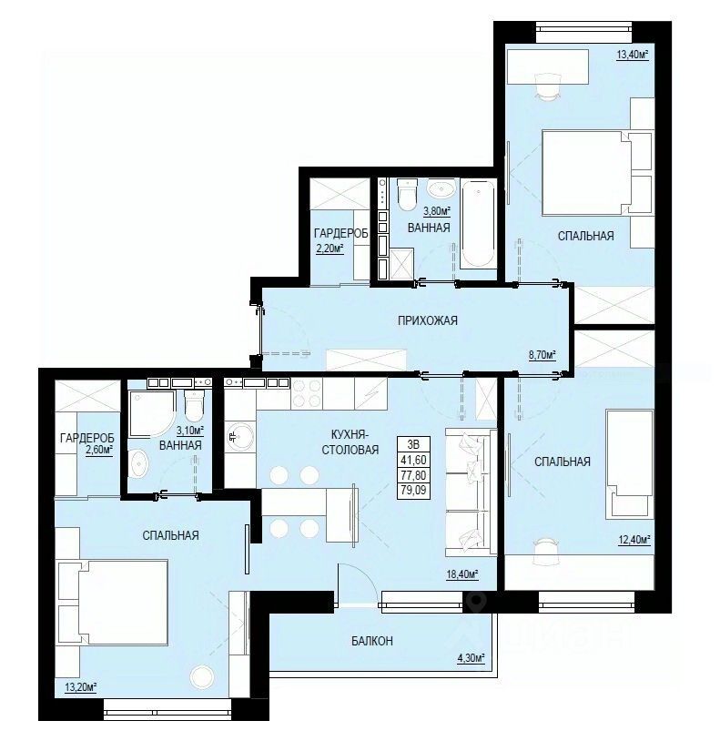 Общая площадь79,49 м2