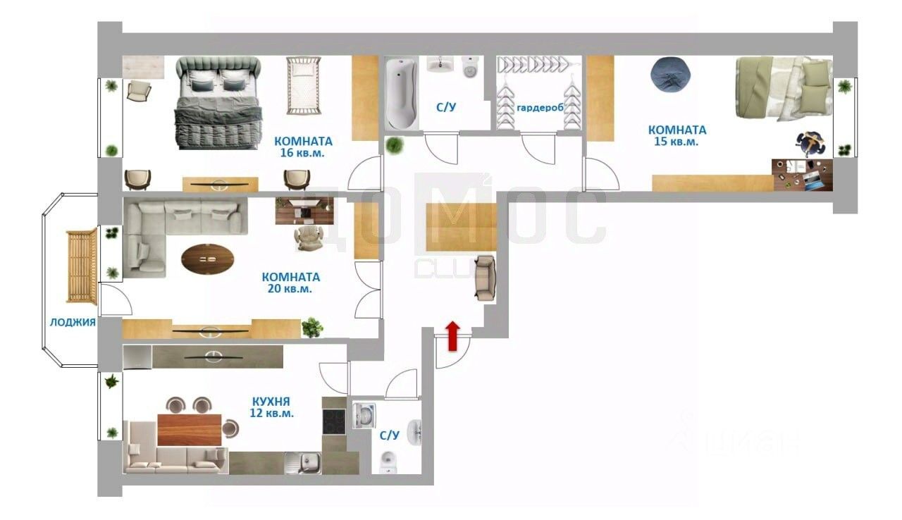 Большой холл позволяет зайти в квартиру и коляской и с санками. Обустроен большой шкаф-купе в прихожей для хранения одежды и обуви, а так же есть отдельная гардеробная для сезонных вещей