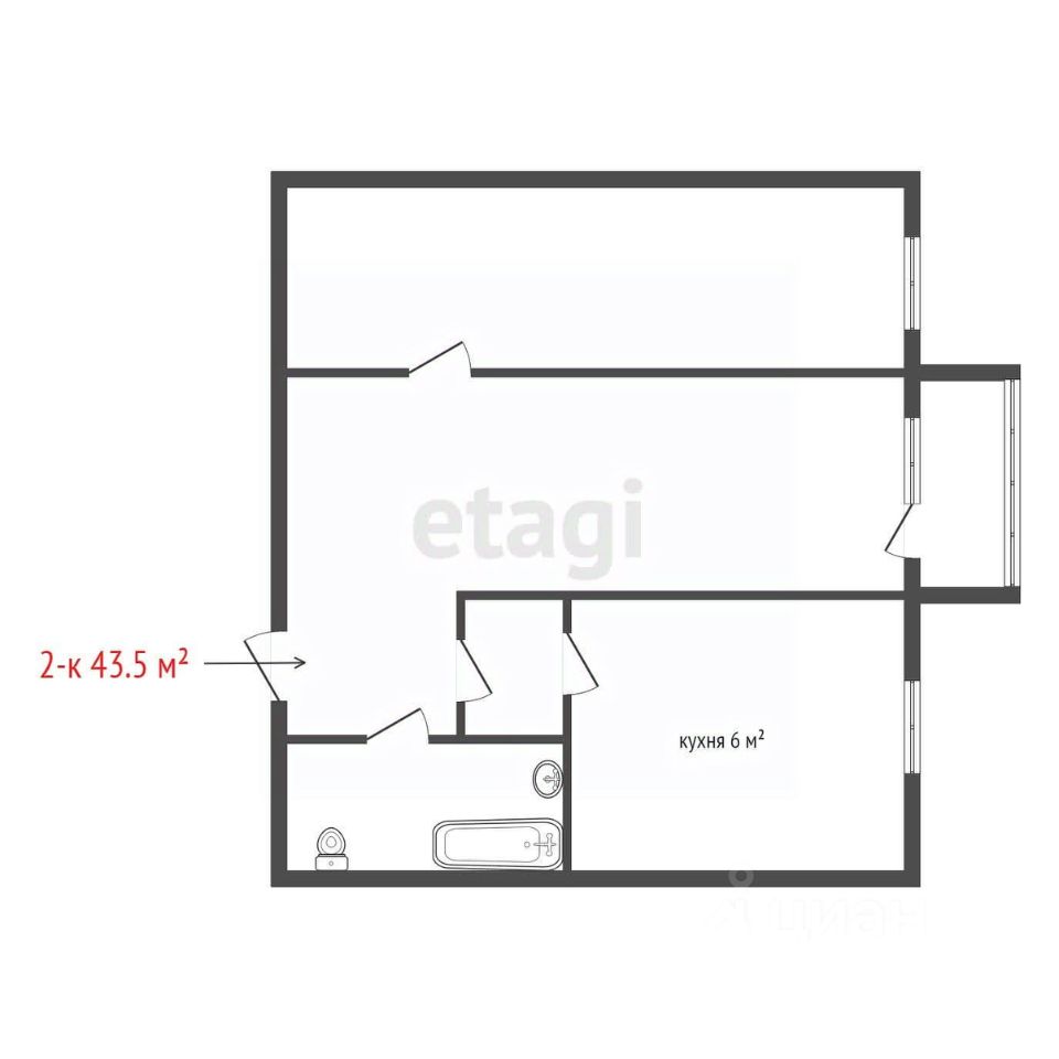 Площадь квартиры составляет 43,5 м2 + 3 м2 балкон.
