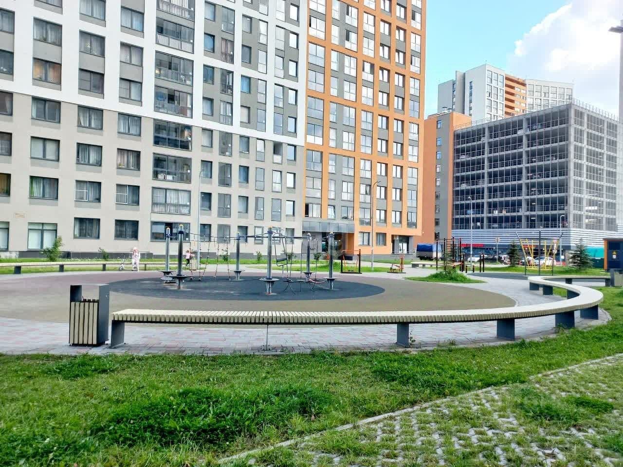 отличный просторный зеленый двор с детской площадкой, все чисто, аккуратно, хорошие добропорядочные соседи
