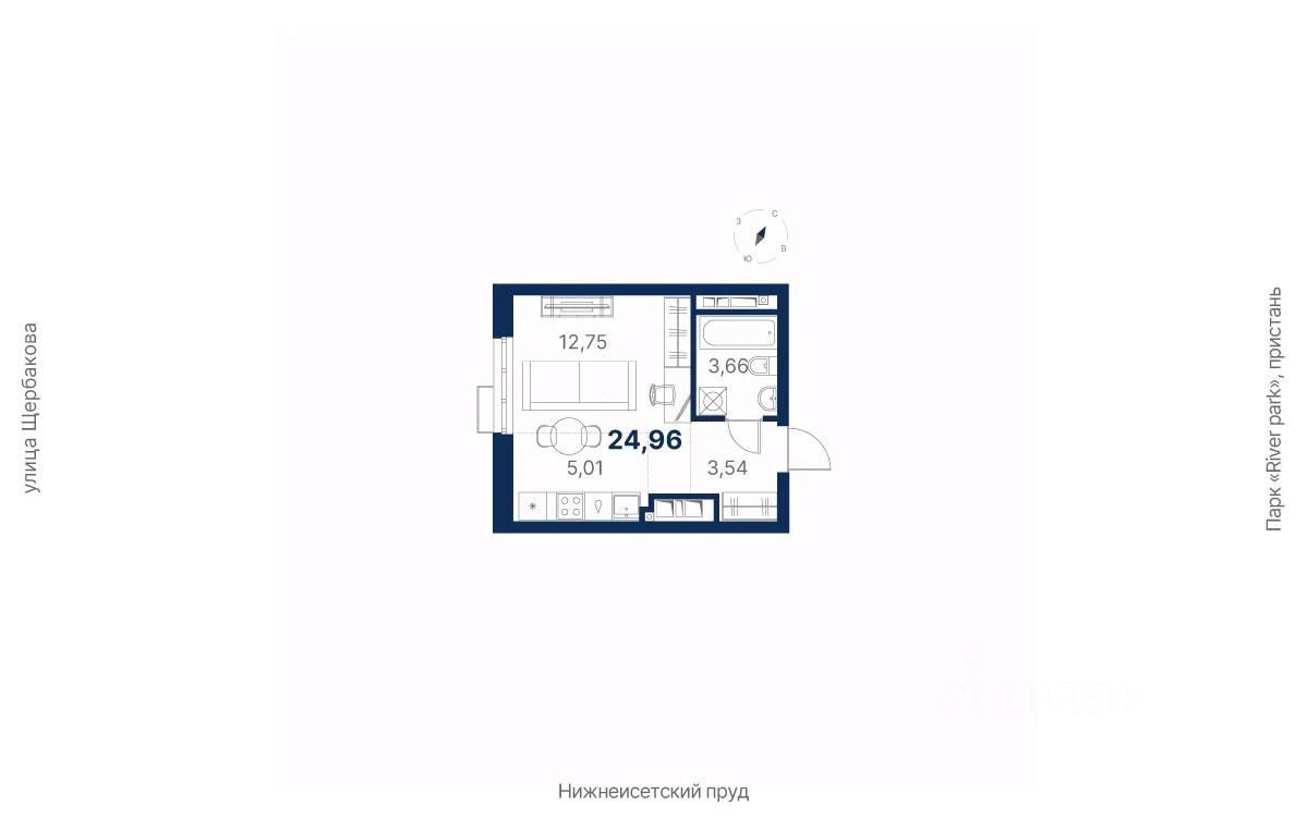 продам 1-к, Щербакова, 154 стр.4 355 199 ₽