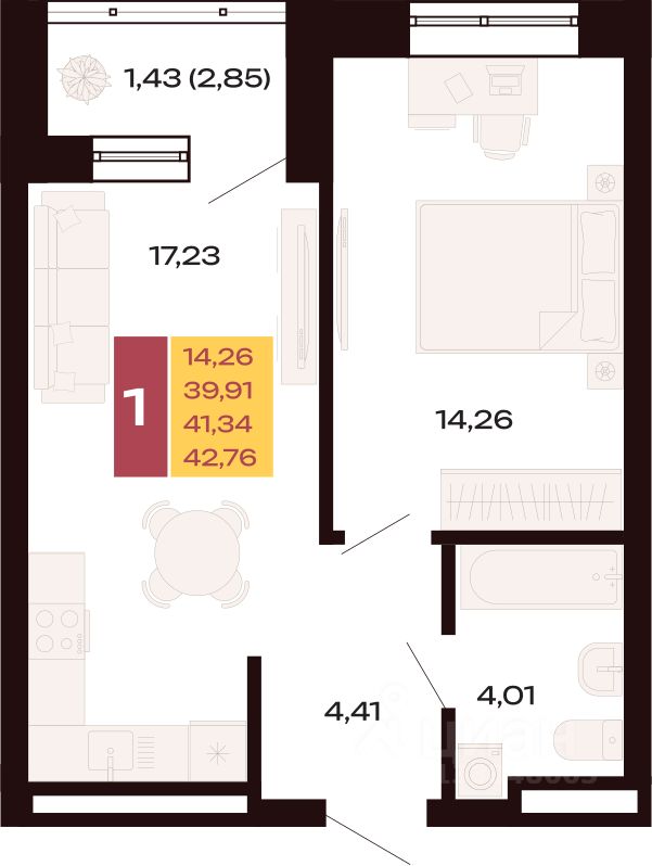 Продается Однокомнатная квартира площадью 42.76 кв.м. на 25 этаже. Квартира в ЖК ''Первый Южный'' располагается в центральной части перспективного микрорайона, в границах улиц Шаумяна, Амундсена, Волгоградской и Советских Женщин с отличной транспортной доступностью, близостью к центру и развитой социальной инфраструктурой.