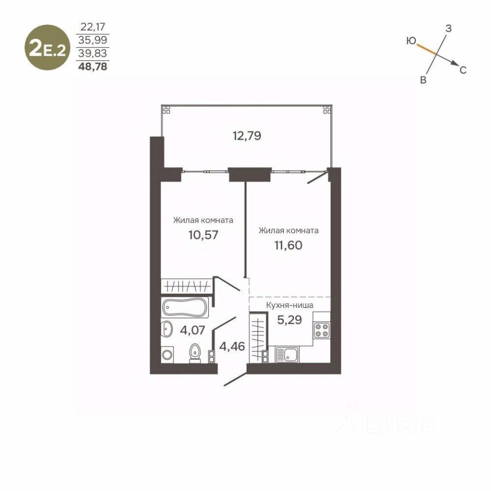 Общая площадь39,83 м2