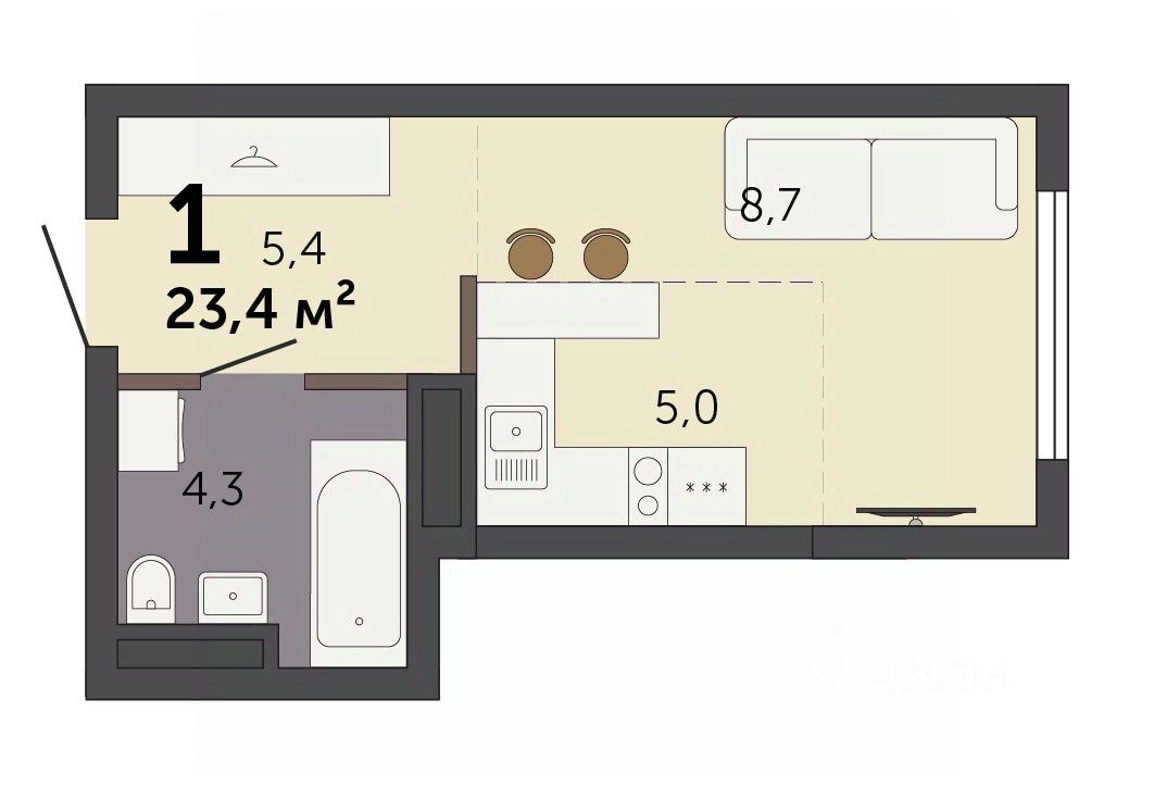 Продаётся студия в строящемся доме (Секция 1.1), срок сдачи: I-кв. 2028, общей площадью 23.4 кв.м., на 16 этаже. Новый жилой комплекс ''Парк Культуры'' от застройщика ''СЗ Новый Дом'' расположен по адресу: г. Екатеринбург, Базовый переулок.