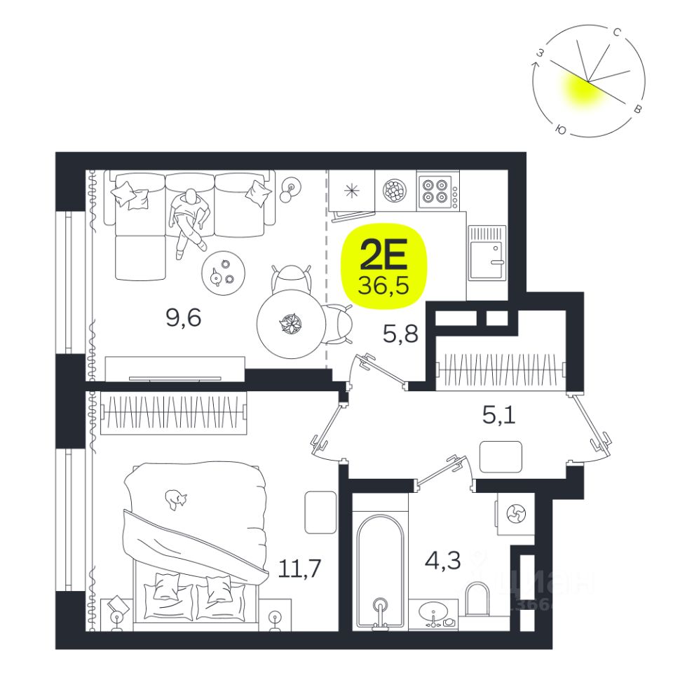 Общая площадь36,5 м2