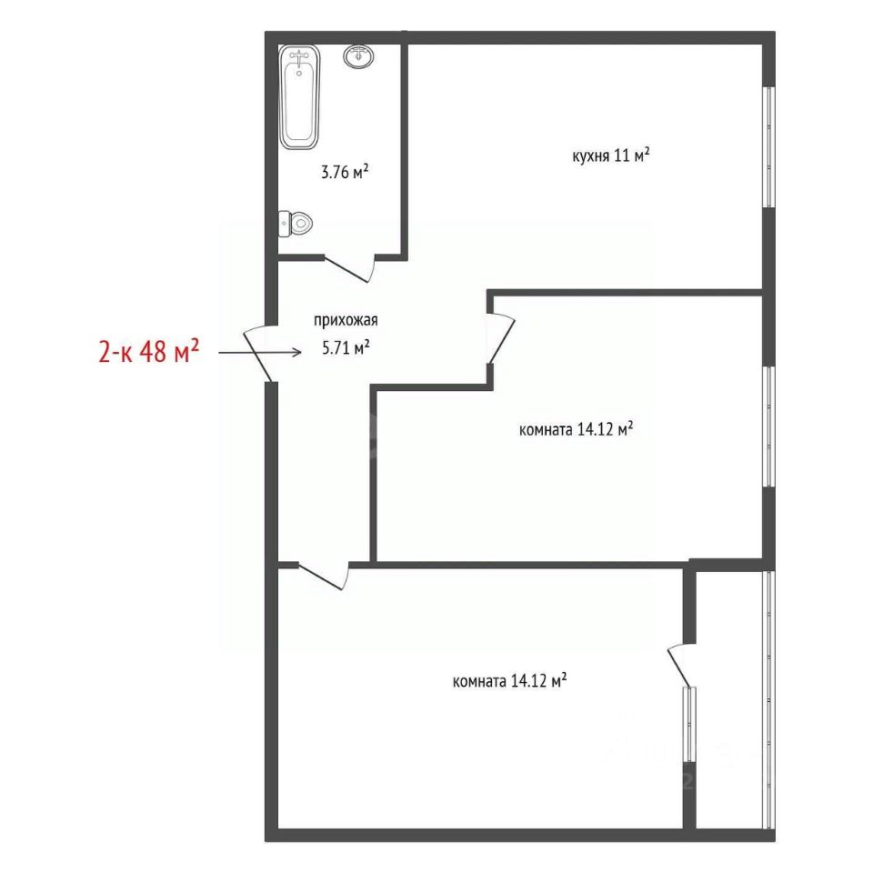 Продается двухкомнатная квартира площадью 48 кв.м. на 11 этаже по улице Академика Парина, д. 46/5.