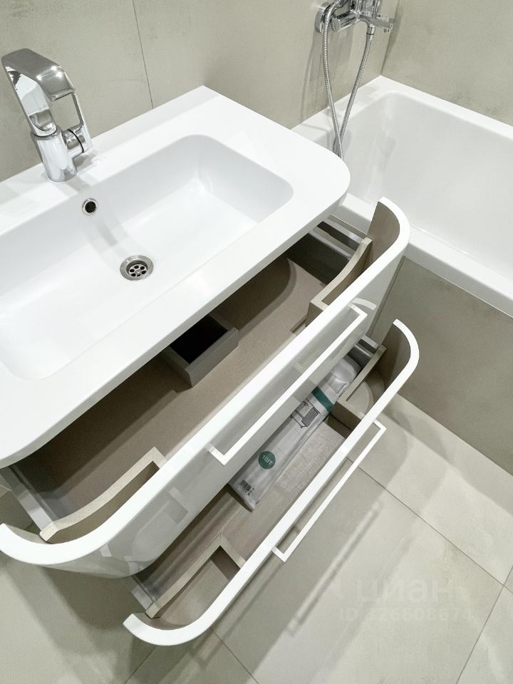 В ванной тёплый пол, вытяжка, полотенцесушитель, очень удобная тумба для хранения принадлежностей . Ночная подсветка .