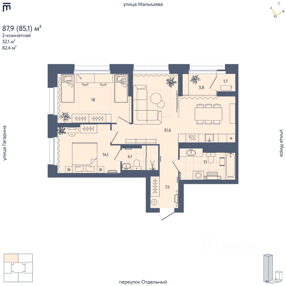 Жилой комплекс бизнес-класса ''Отдельный, 5'' рядом с УРФУ. Новый жилой комплекс бизнес-класса в Кировском районе Екатеринбурга (Втузгородок), расположенный в тихом квартале между улицами Малышева, Мира и Гагарина. Архитектурный ансамбль состоит из двух секций высотой 29 и 8 этажей, объединенных стилобатом с коммерческими помещениями и семейным кафе. Комплекс создан для комфортной и приватной жизни людей, ценящих простор, безопасность и современный уровень сервиса. Преимущества ЖК ''Отдельный, 5'' 1. Просторные и комфортные планировки бизнес-класса Минимальная площадь квартир начинается от 58 м². Предусмотрены варианты с просторными кухнями-гостиными, мастер-спальнями, кабинетами и функцинальными ванными. Теплая лоджия в каждой квартире.