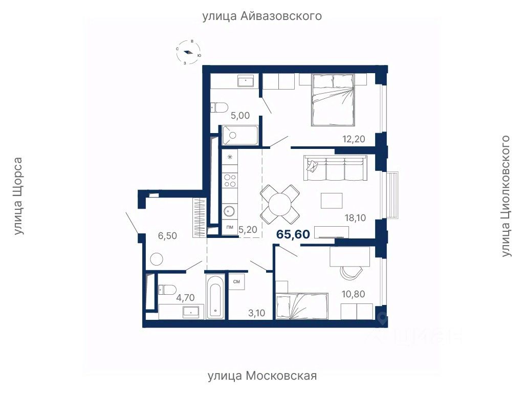 Удобное расположение между ул. Московская, Щорса, Айвазовского и Циолковского — рядом метро Чкаловская и всё необходимое для жизни.