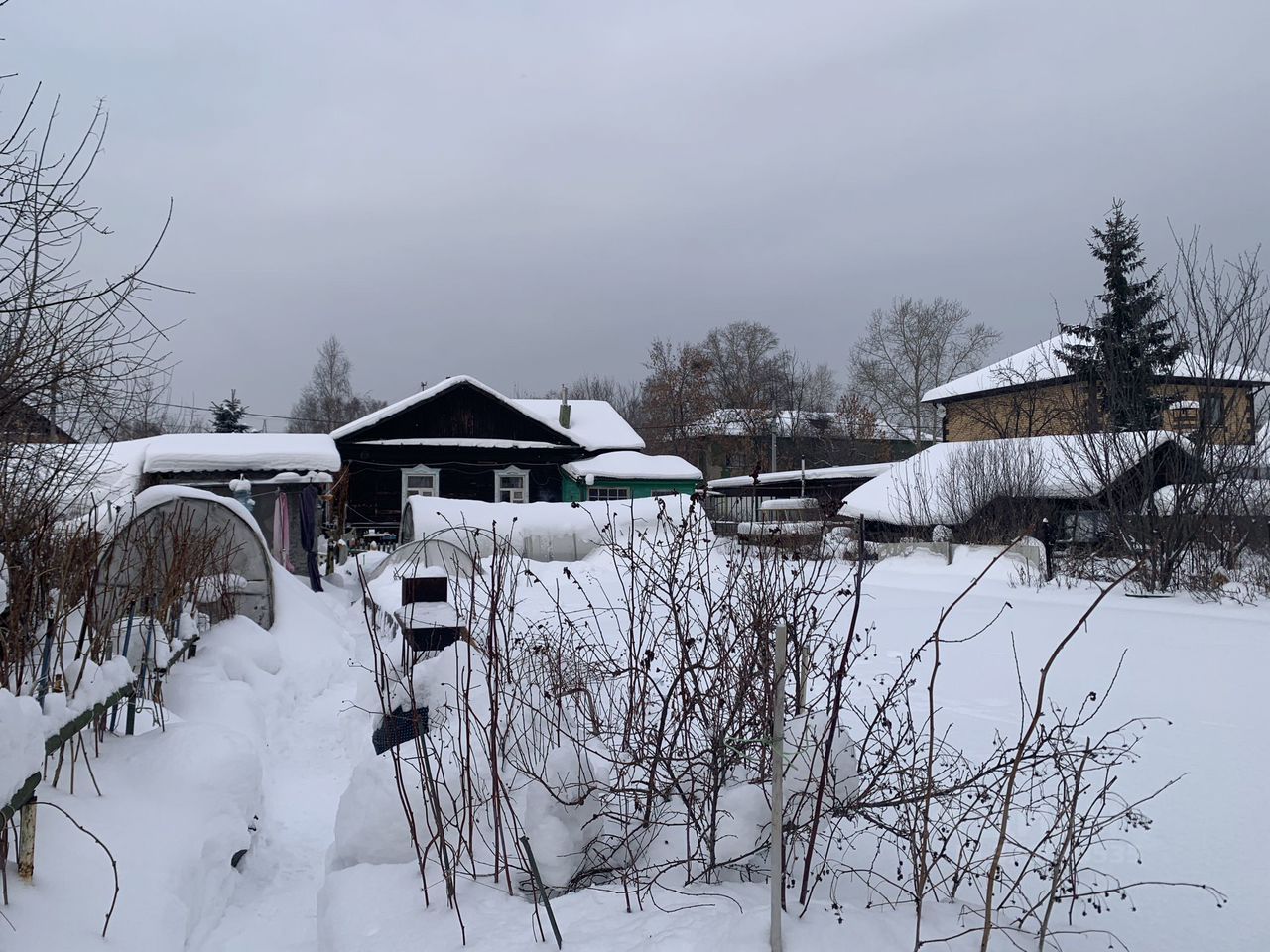 Учacтoк рaзpаботaн: много ягoд, три плодоносящих яблони, ирга и пр.