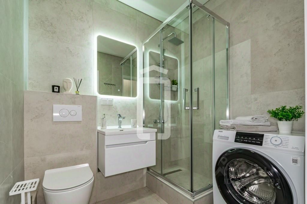 Комплектация: - Бытовая техника: холодильник, микроволновая печь, электрический чайник, плита и духовой шкаф - Спальное место: удобная кровать с ортопедическим матрасом и подъемным механизмом - Хозяйственный блок: пылесос, утюг, гладильная доска, стиральная машина - Мебель: вся необходимая для комфортного проживания