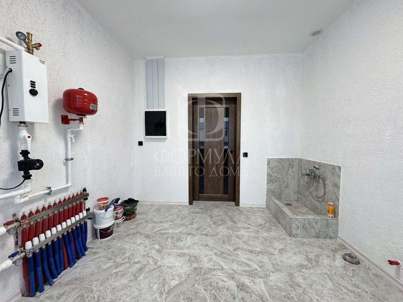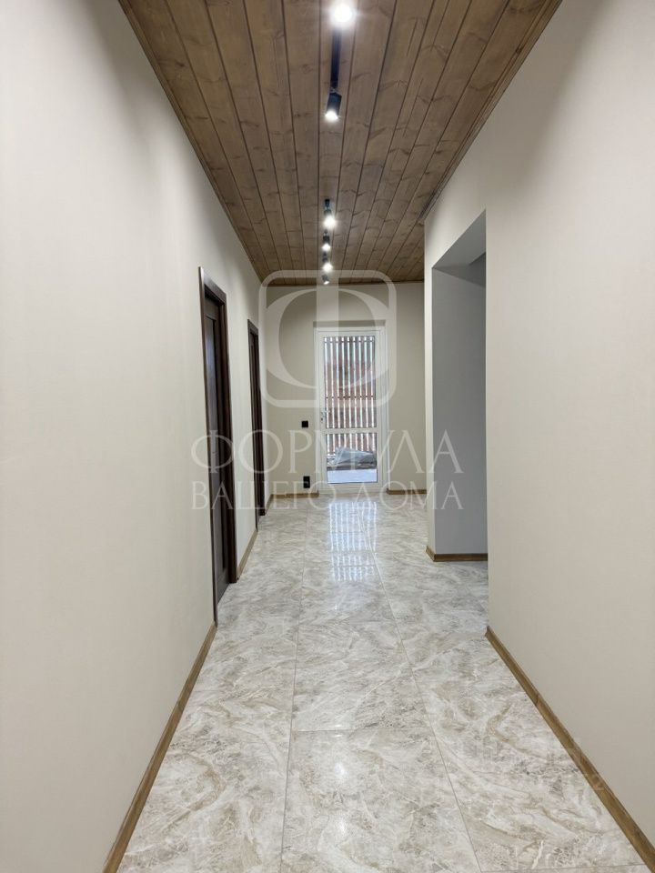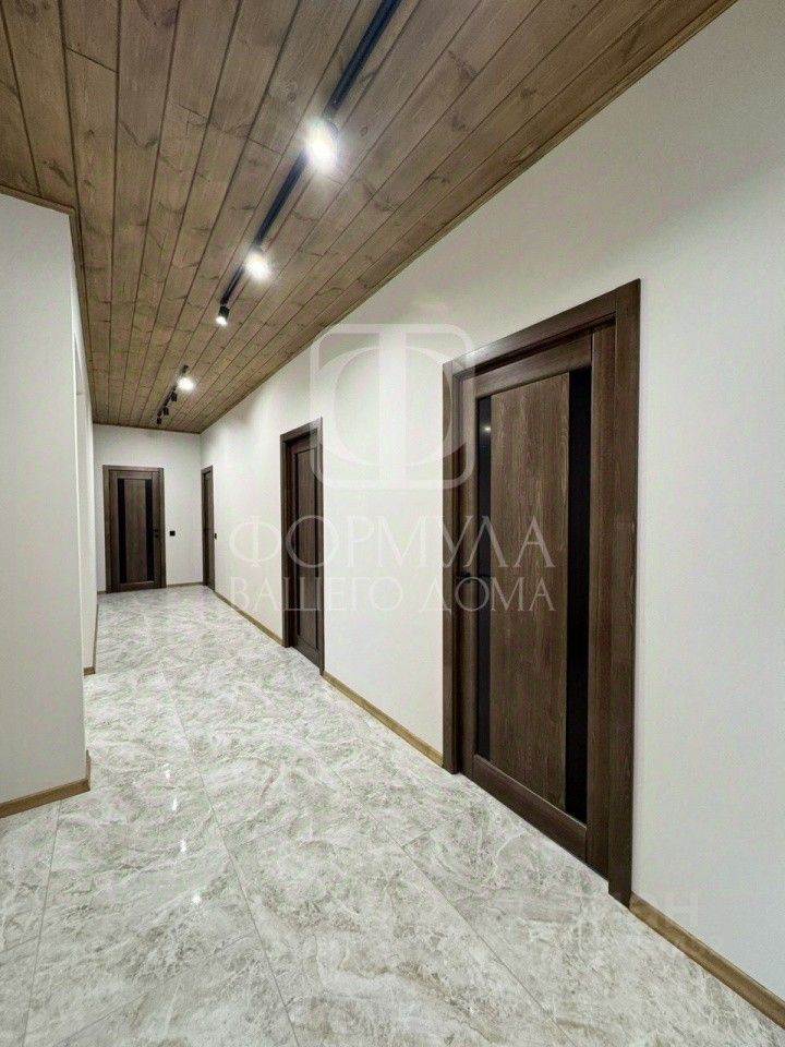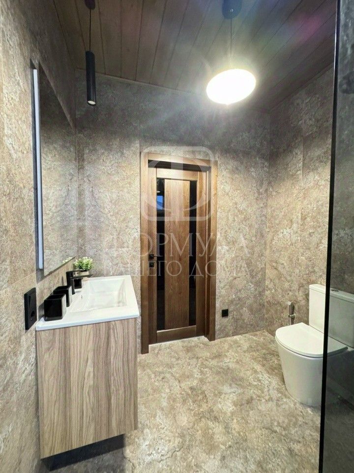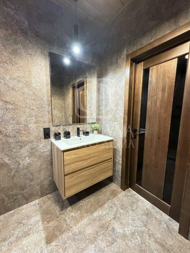 Отделка ''под ключ'': На полу керамогранит, ламинат, на стенах обои покрашены, межкомнатные двери, деревянные потолки со светильниками (потолок весь обшит гипсокартоном, это важно!), подоконники из натурального дерева, в санузле плитка, установлена вся сантехника: просторная душевая кабина, унитаз, раковина с зеркалом, в котельной котел, водонагреватель, лапомойка.