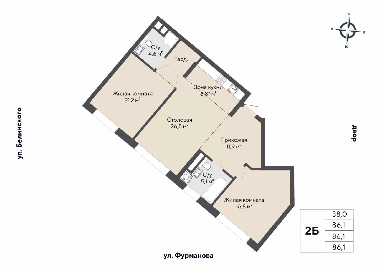 Общая площадь86,1 м2