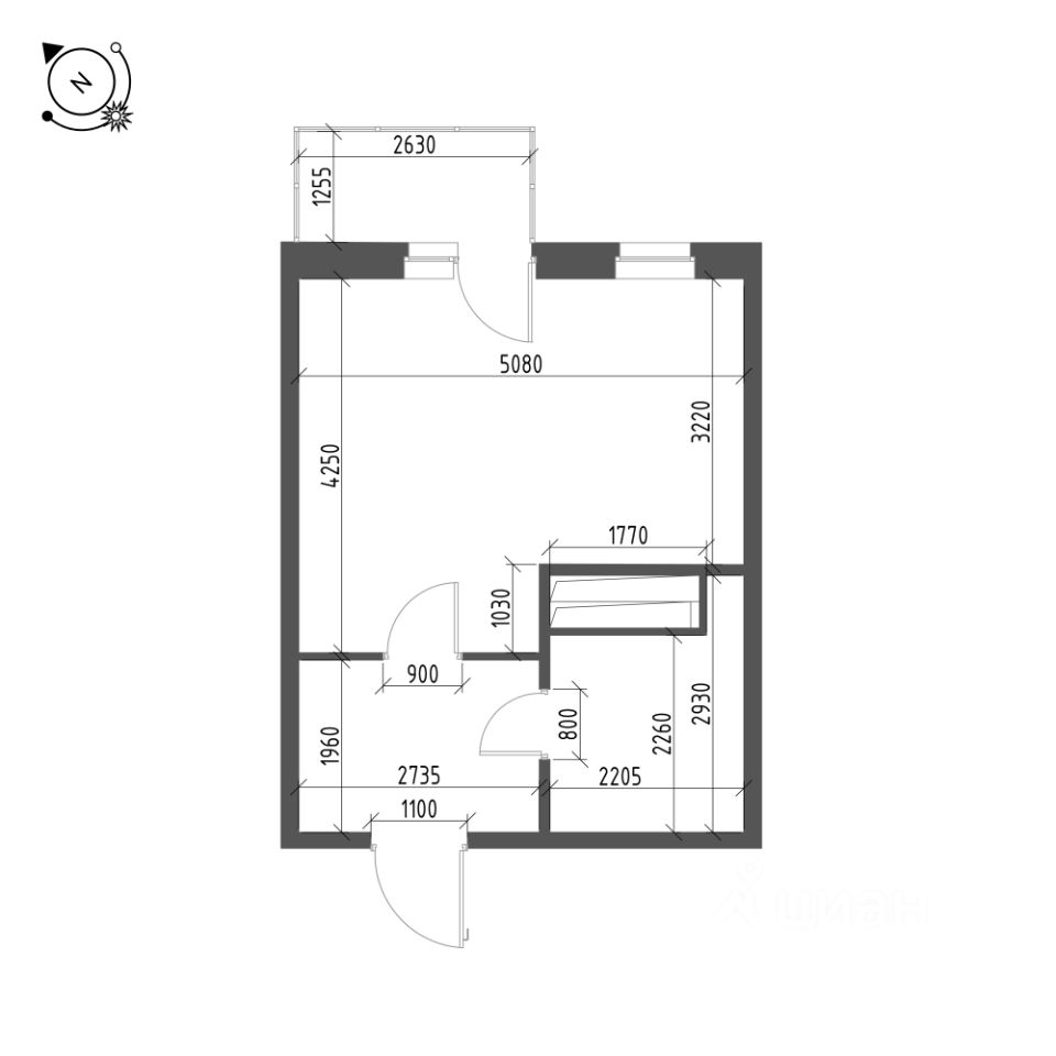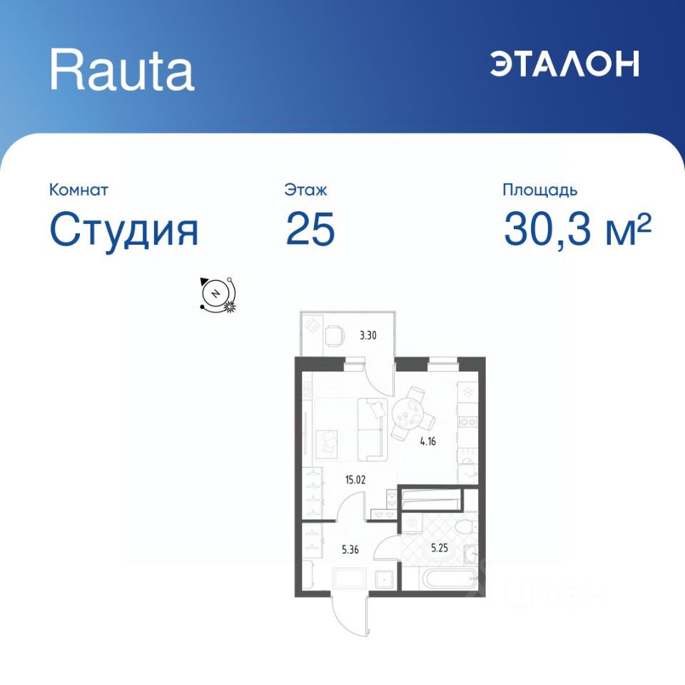 Общая площадь квартиры — 30.3 кв. м, этаж 25 из 25.