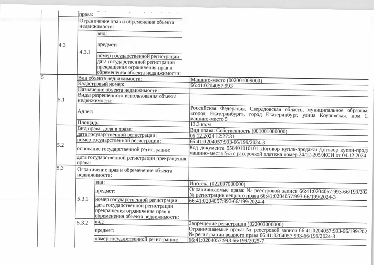 Должник: Каримов Т.Д., собственник: Каримов Т.Д. Лот: Машино-место 5, площадь 13,3 кв.м., кадастровый номер: 66:41:0204057:993, г. Екатеринбург, ул. Коуровская, д. 13/3, н/ц: 585000 р., з-к: 585 р., код: 0014, рег. 02-3373/25-1