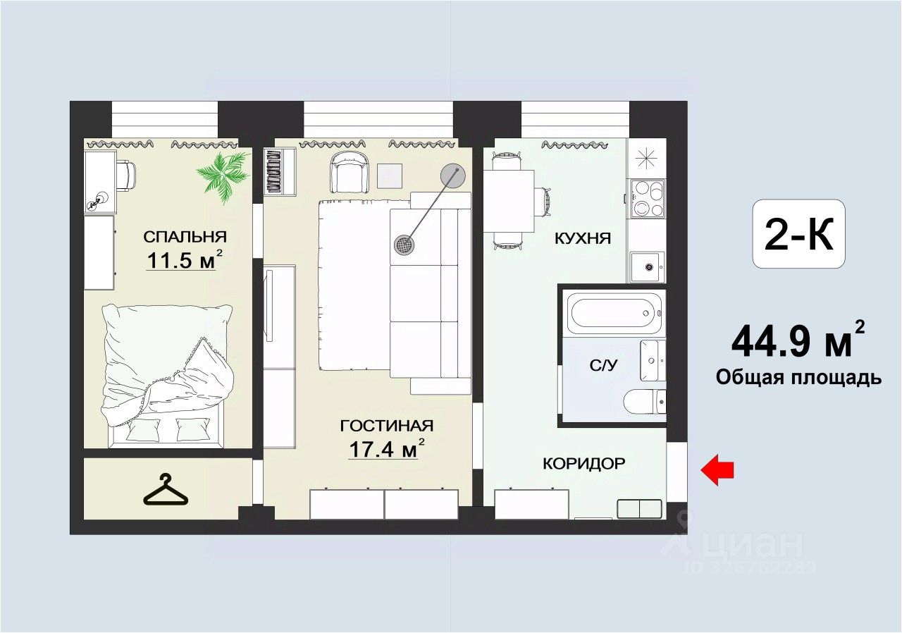 Предлагаем Вашему вниманию уютную, отличную 2х комнатную квартиру общей площадью 44.5кв.м. Квартира находится в спальном районе
