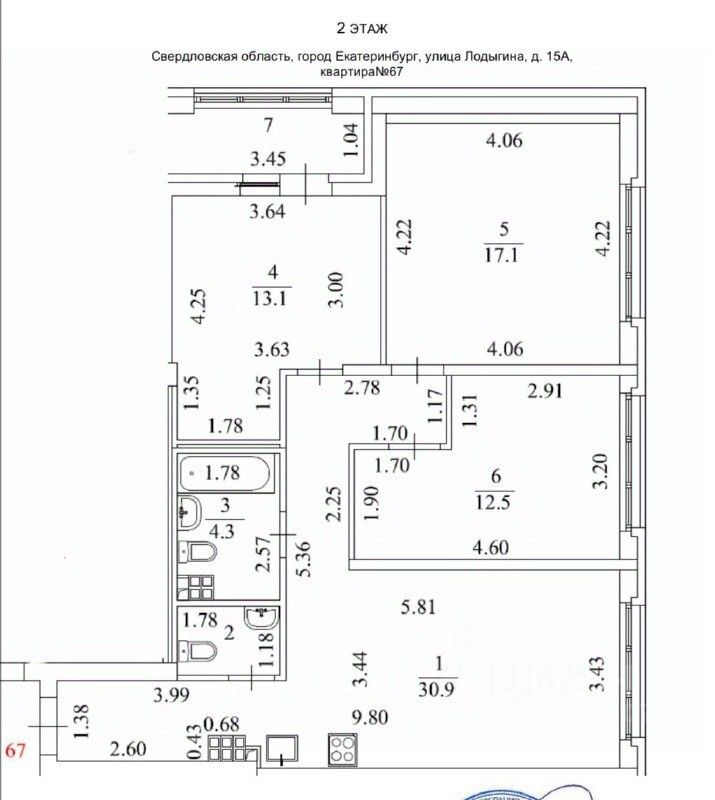 продам 3-к, Лодыгина, 15а10 890 000 ₽