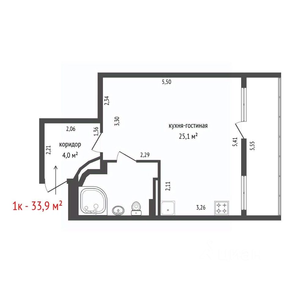 Сдам на длительный срок уютную квартиру-студию 33,9 м2.