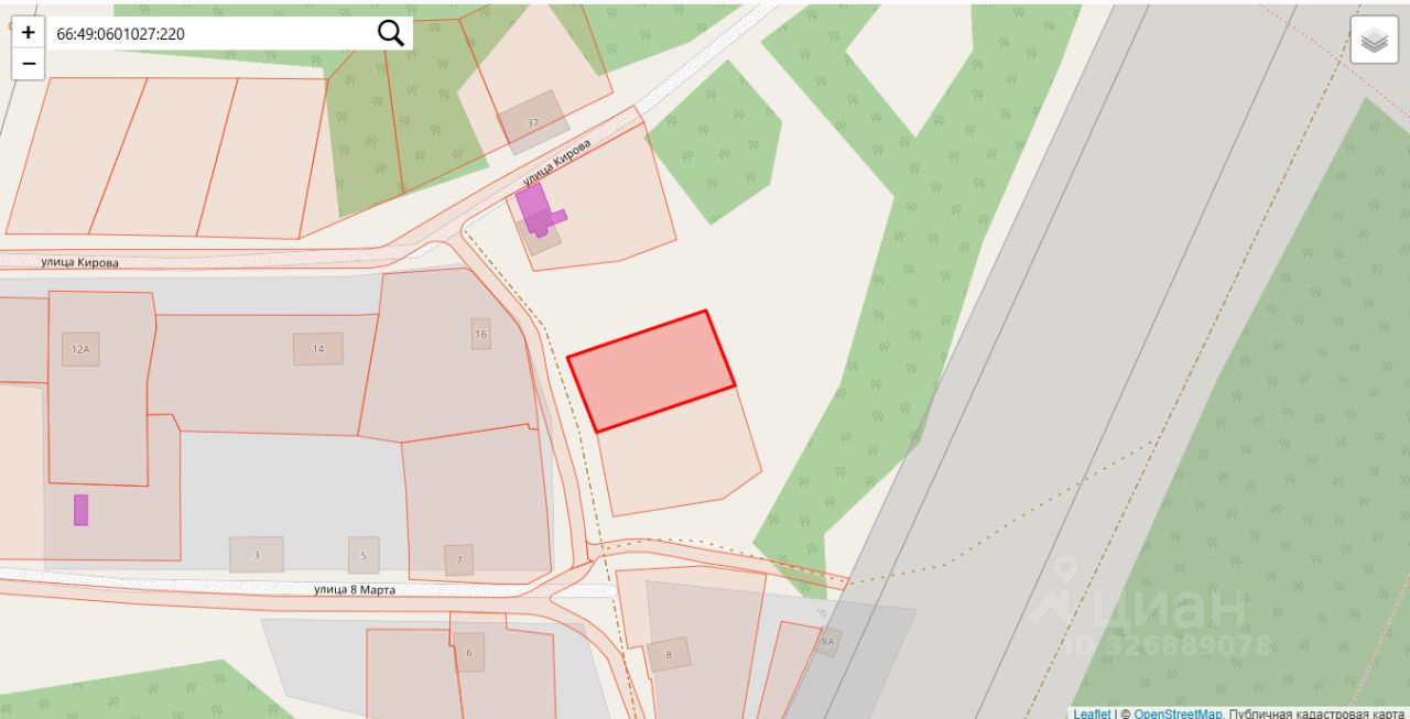 Данные получены с сайта ГИС Торги. Земельный участок с кадастровым номером 66:49:0601027:220, общей площадью 1139,0 квадратных метров, местоположение: Свердловская обл., г. Кировград, поселок Нейво - Рудянка, ул. Кирова, участок 20