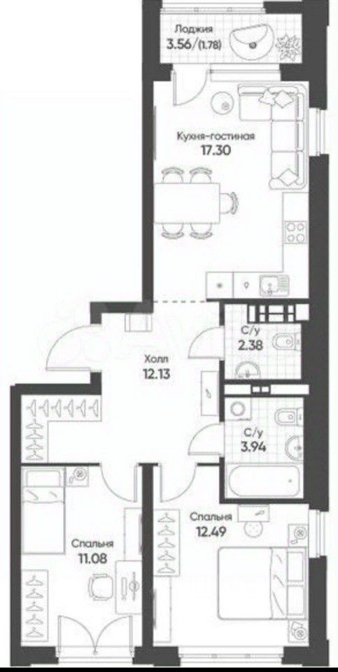 В продаже евро двухкомнатная квартира с функциональной планировкой: просторная кухня-гостиная , две комнаты, вместительная гардеробная, выход на лоджию из кухни-гостиной, два санузла. Квартира светлая, окна выходят на разные стороны (юг, запад).