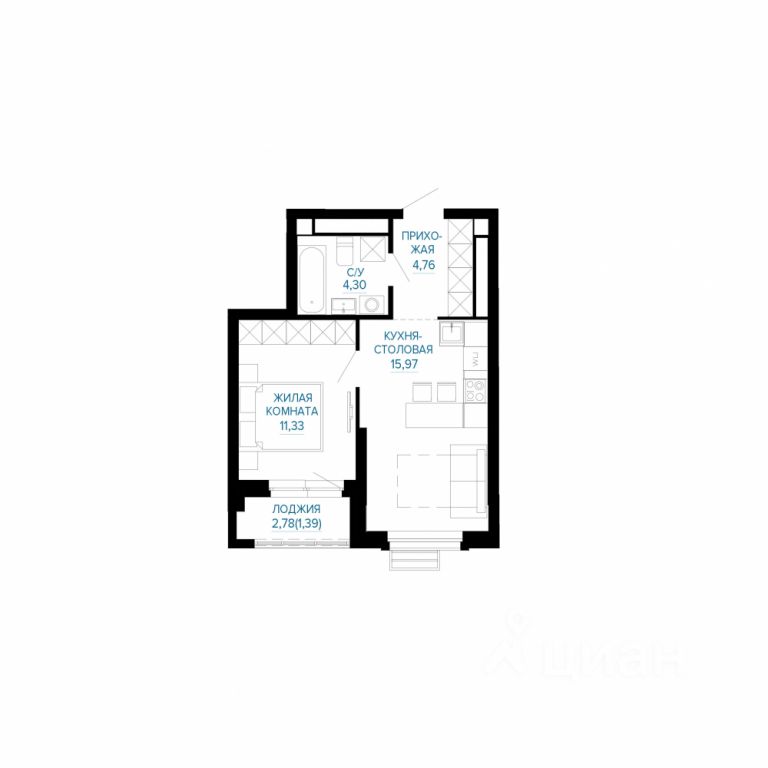 Общая площадь37,75 м2