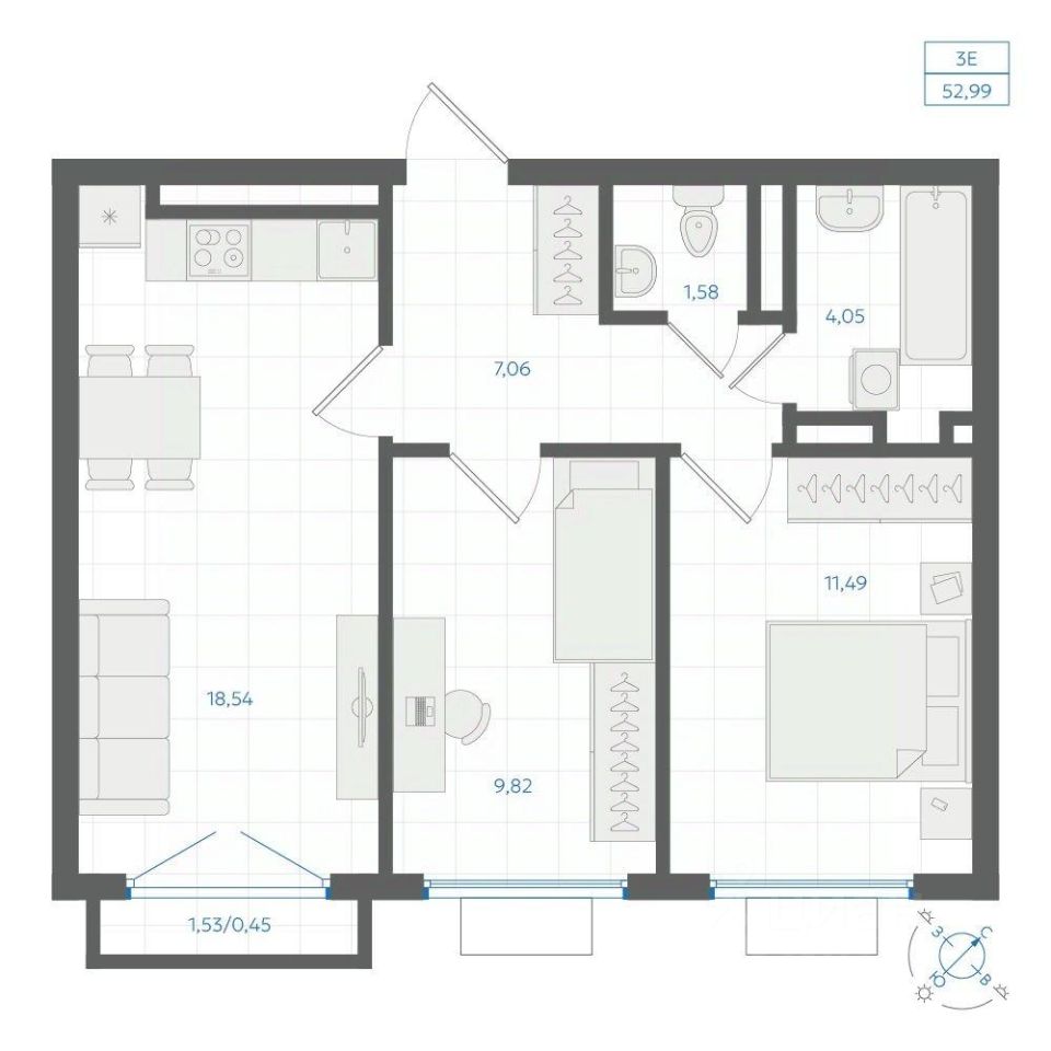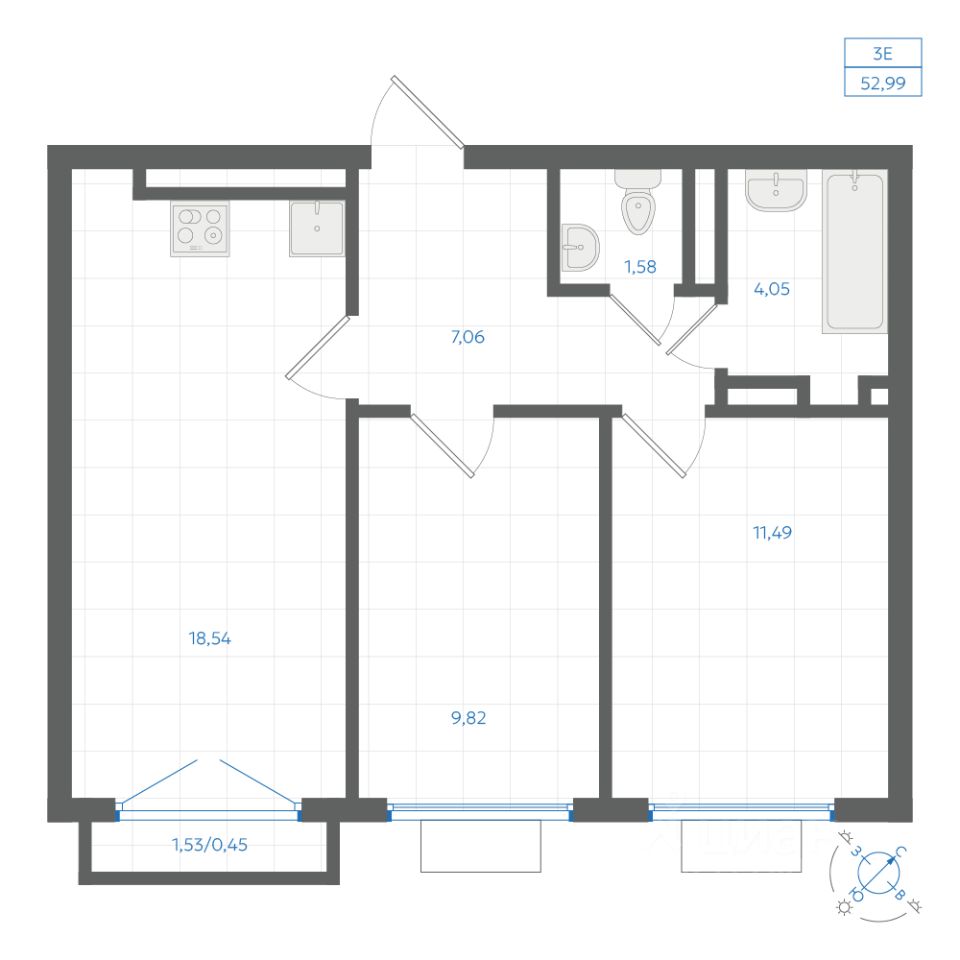 Общая площадь52,94 м2