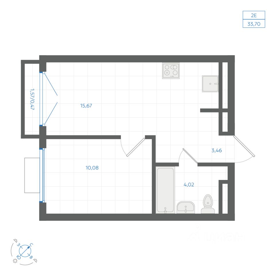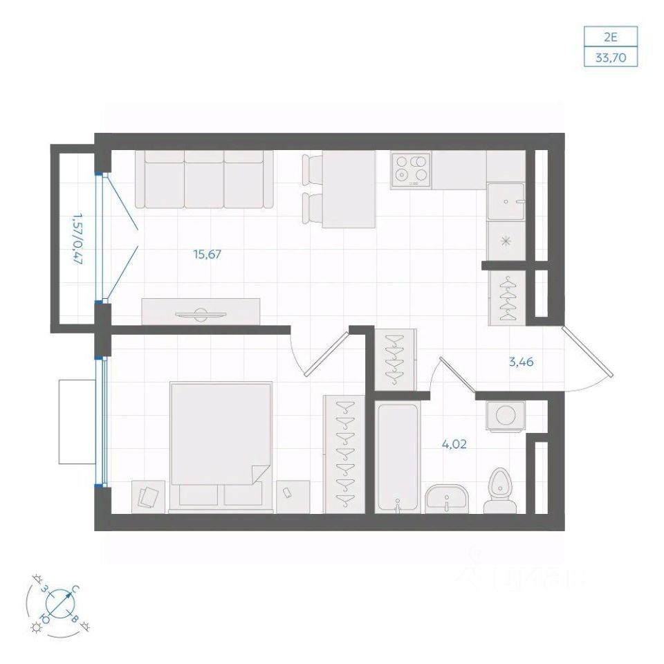 Общая площадь33,7 м2