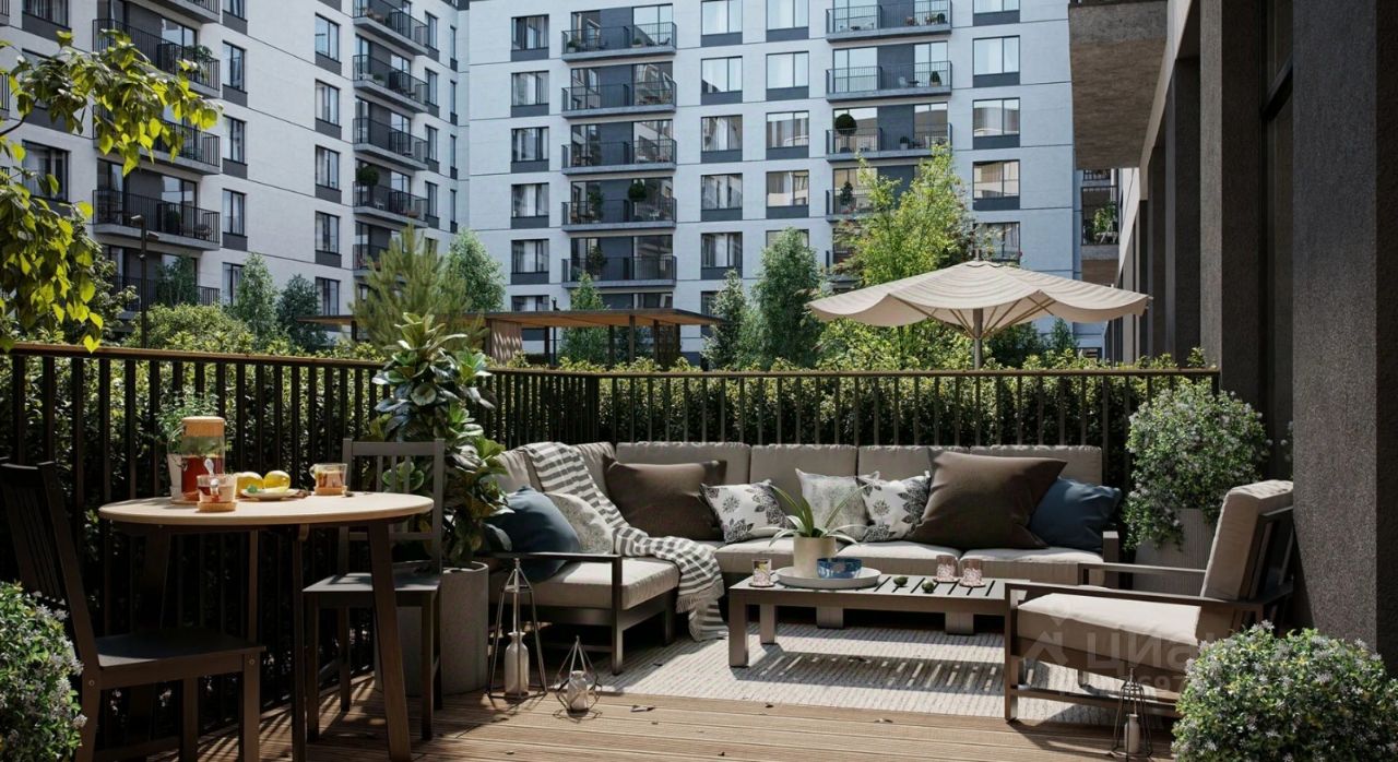 Камерные дворы квартала закрыты от машин. По нашим стандартам 70% их территории покрывает зелень. Деревья, кустарники и травы подобраны таким образом, чтобы в каждый сезон двор оставался красивым и имел свой цвет. Каждый двор разделён на зоны. В одной расположены детские площадки, в другой — места для спорта и тихого отдыха взрослых.