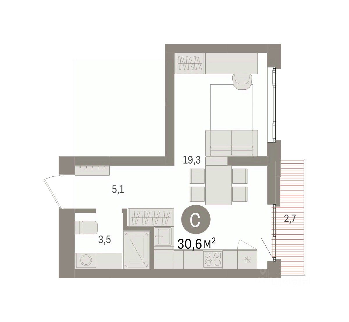 Общая площадь30,6 м2