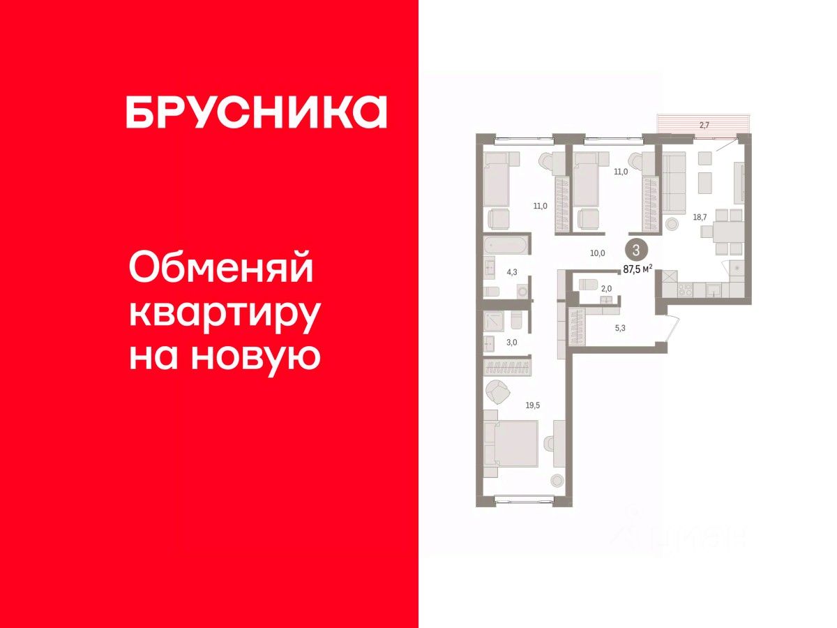 Продается 3-комн. квартира от застройщика с предчистовой отделкой в ЖК ''Квартал Траектория'' на 5 этаже. Общая площадь: 87.5 кв.м., жилая: 41.5 кв.м., площадь просторной кухни-столовой: 18.7 кв.м. Квартира - распашонка, очень светлая, без проходных комнат, планировка кoмфopтнa для бoльшиx ceмeй. В квартире один балкон, два совмещенных санузла. Высота потолков 2.82 м.