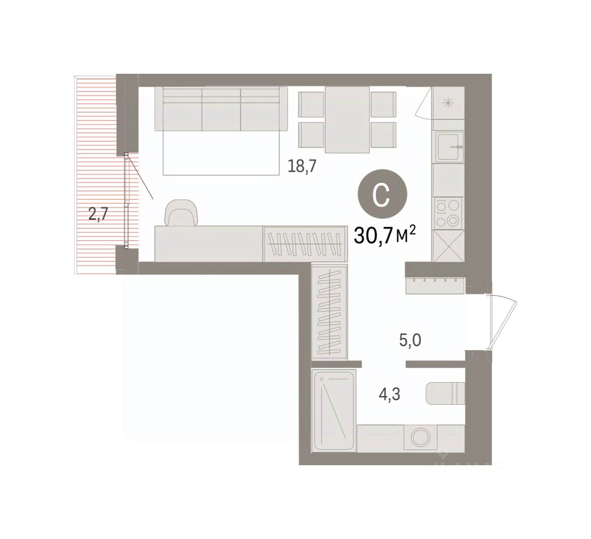 Общая площадь30,7 м2