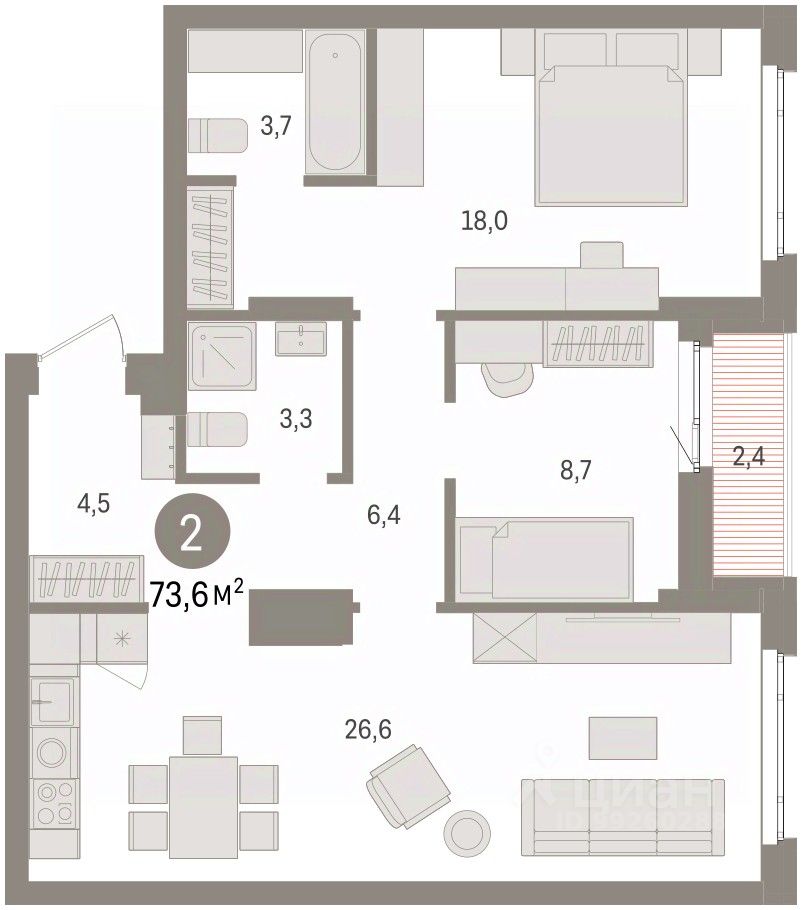 Общая площадь73,6 м2