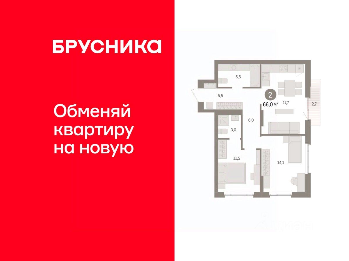 Двухкомнатная квартира с предчистовой отделкой в ЖК ''Квартал Траектория'' на 14 этаже. Общая площадь: 66 кв.м., жилая: 25.6 кв.м., площадь просторной кухни-столовой: 17.7 кв.м. Угловая квартира, идеально подойдет любителям тишины и панорамных видов. В квартире один балкон, два совмещенных санузла. Высота потолков 2.82 м.