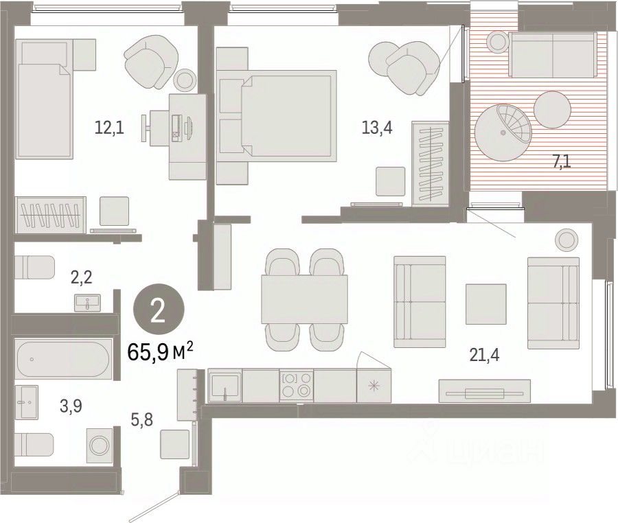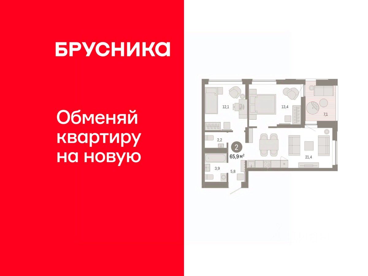 Квартира с кухней-гостиной и двумя спальнями в районе Шишимская горка. Особенности планировки: второй санузел, предчистовая отделка, терраса на крыше. квартиры в нашей базе: ШГР16-Ж5.14.1.